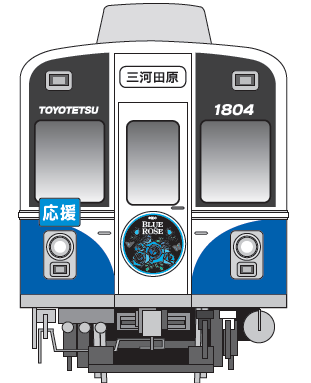 - 内容:渥美線「1804号(ひまわり)」を、期間限定で「夢応援・幸運のBLUE ROSE号」として運行します。車内ポスターには豊橋市内3大学の学生の皆さまからの手書き応援メッセージを掲出するほか、特別な種別板やヘッドマーク、側面には青いバラをあしらったデザインシートを掲出します。
