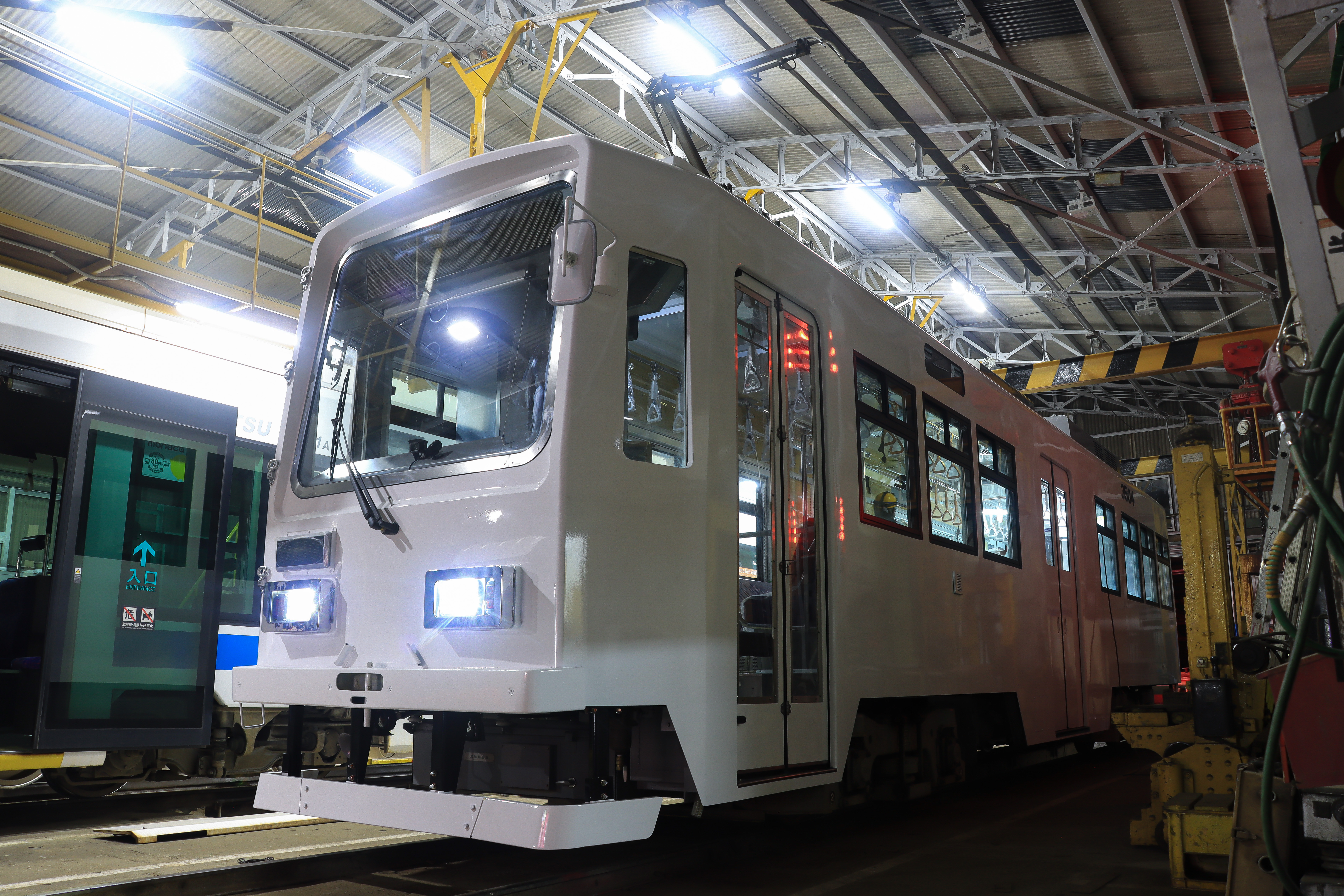 車両リニューアル工事を行っていた市内線 3504号がいよいよ赤岩口車庫に戻ってまいりました! このたび、同車両が新しいデザインをまとう前のわずかな期間だけ見ることができる、“ラッピング施工前の状態”を「special white(スペシャルホワイト)3504号」と題し、期間限定で運行いたします。